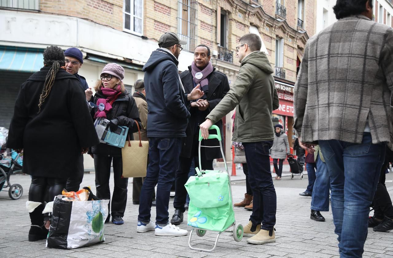Sur le marché dominical de Saint-Denis, les candidats serrent moins de mains en cette période d’épidémie. Mais tiennent encore à garder un c